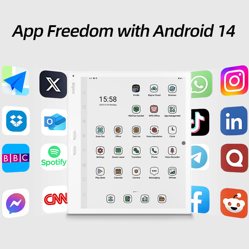 Powered by a robust octa-core processor and 8GB of RAM, the B10 handles everything from multitasking to everyday office tasks with remarkable ease. Whether you're juggling apps, managing projects, or simply browsing, everything runs smoothly and efficiently. With Bigme's advanced refresh optimization, every interaction feels instant and intuitive.